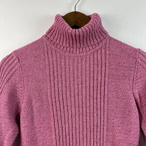 Sundance Turtleneck Sweater Womens S Pink Marled Ribbed Silk Blend Pullover Soft