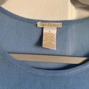 Sundance Twilight Embroidered Chiffon Shift Dress size Small In Excellent preowned condition Slips over head Short cap sleeves Lightly crinkled chiffon Tonal embroidery Upper shell: Rayon; Lower: Cupro; Lining: Rayon