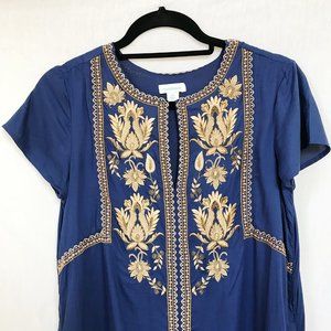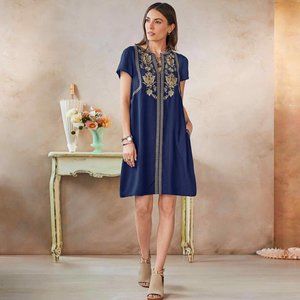 Sundance Venezia Lapis and Gold Short sleeve Bohemian Dress