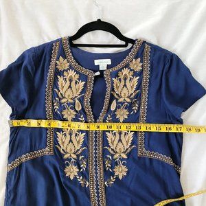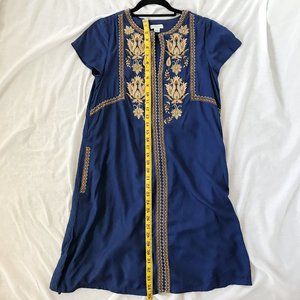 Sundance Venezia Lapis and Gold Short sleeve Dress, Size XS