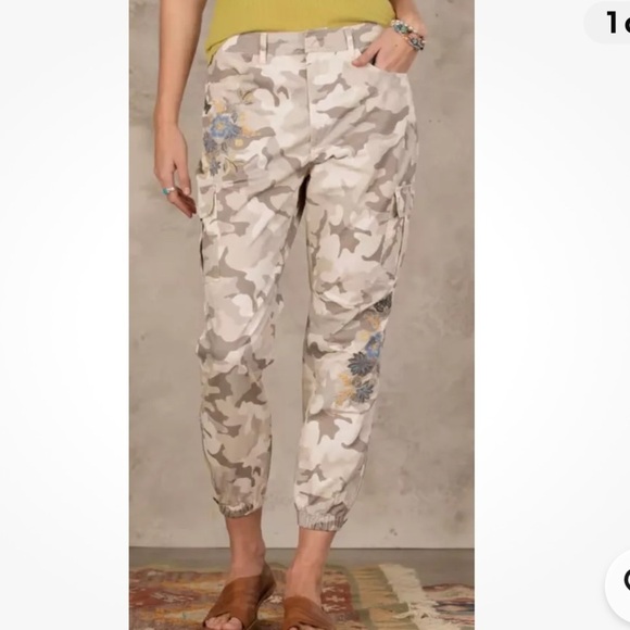 Sundance Vivant Cream Taupe Camo Print Floral Embroidered Jogger Pant Size P/4
