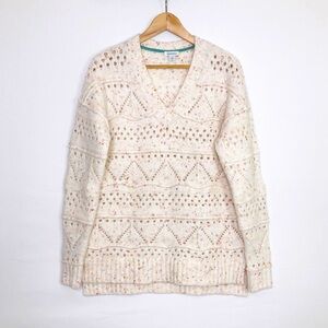 Sundance mini V-neck open knit speckled oversize sweater