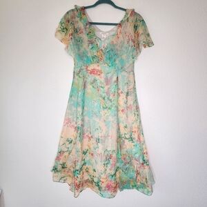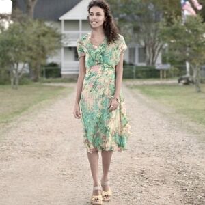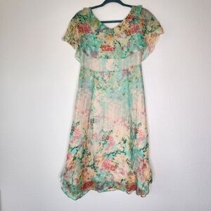 Sundance Watercolor Floral Silk Ruffle Midi Elysian Garden Dress 2P