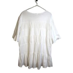 Sundance White 100% Cotton Short Flutter Sleeve Tiered Top Size Large