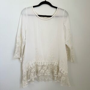 Sundance White Betrothed Embroidered Lace Tunic Feminine Boho Whimsical Size MP
