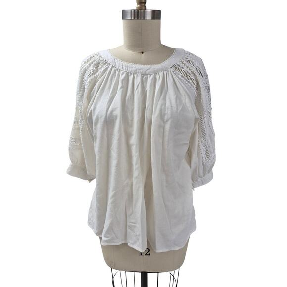Sundance White Cotton 3/4 Balloon Sleeve Blouse - Messy Coquette Sz S