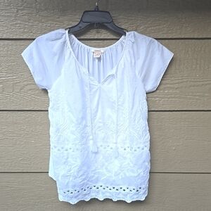 Sundance White Cotton eyelet Embroidered Tassel Boho Peasant Top Small S