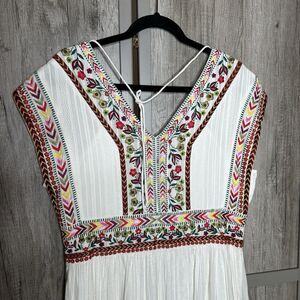 Sundance White Dress Size 10 Midi Embroidered Bohemian Long Full Skirt Cotton