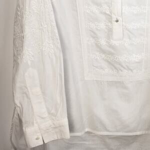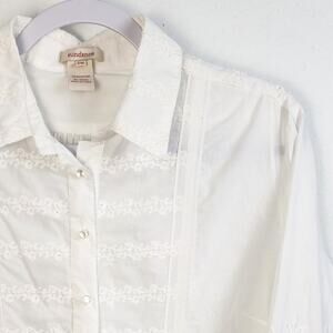 Sundance White Embroidered Collared Shirt Size Petite Medium Coastal Grandma 70s
