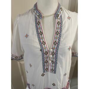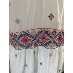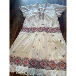 This lovely Sundance dress is perfect for any occasion! Featuring delicate white embroidery and a comfortable fit, this dress is sure to turn heads. Pockets, too!