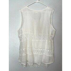 Sundance White Sleeveless Lace Mesh Tunic Top 100% Cotton Made In India Size XL