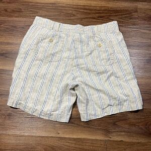 Sundance Wilde Striped Linen Bermuda Shorts Womens 16 Beige Blue