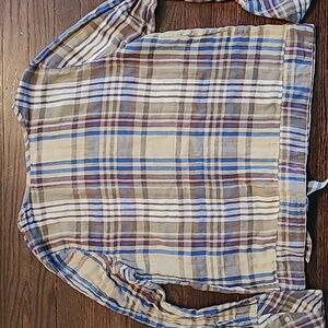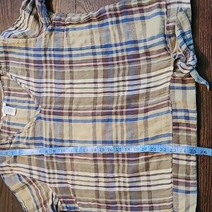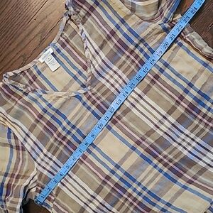 Sundance Willow Plaid Cotton V-neck Tie Knot Waist Popover Blouse Top Wmns XL