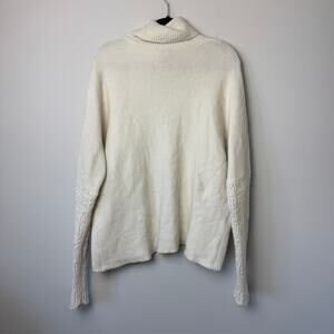This Sundance sweater is the perfect addition to your winter wardrobe! Made with a soft and cozy wool blend, it features a stylish cowl neck and a beautiful winter white color. It is in excellent condition. This sweater is sure to keep you warm and comfortable all season long.
