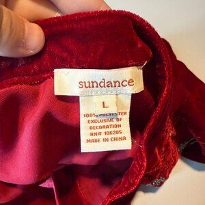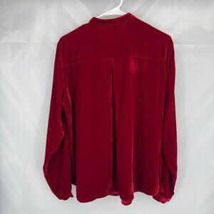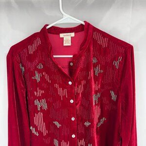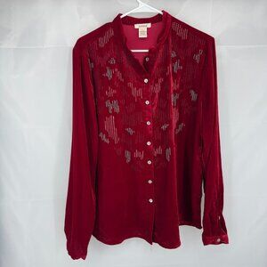 Sundance Women L Velvet Shirt Long Sleeve Red Embroidered Velour Western Top