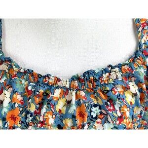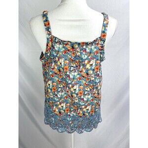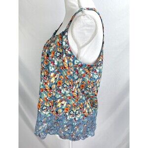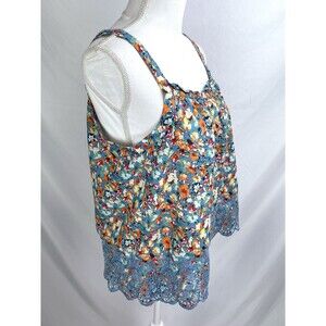 Sundance Women Medium Sleeveless Blue Floral Summer Top Embroidered Lace Trim