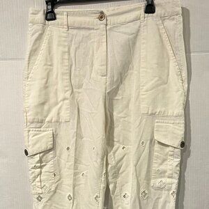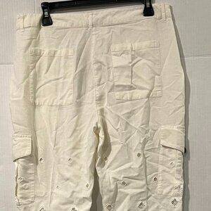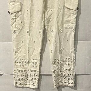 Sundance Women's 10 White Cotton/Linen Cut-Out Straight Leg Pants