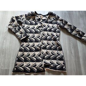 Sundance Womens Black & Beige Geometric Pattern Lambswool Cardigan Sweater