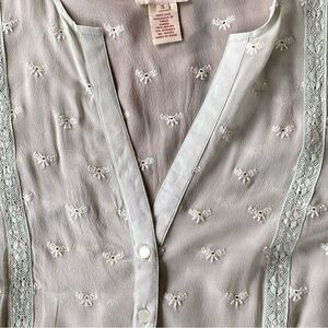 Sundance Womens Blouse Top Silk Eyelet Button Up 3/4 Sleeve Boho Cottagecore S