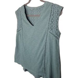 Sundance Womens Blue Eyelet Crochet Blouse Top V-N