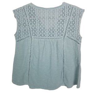 Sundance Womens Blue Eyelet Crochet Blouse Top V-Neck Cap Sleeves Pullover