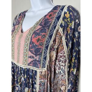 Sundance Women’s Boho Floral Patchwork Peasant Tunic Dress PL Rayon Floral Flowy