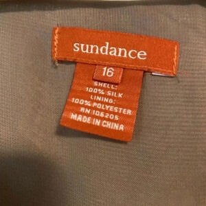 Sundance Womens Brown Silk Chiffon Ruffle Dress size 16. Maxi Feather Print Boho. This dress is pre-owned. Great condition. No flaws. A little sheet on the top. Maxi length. Measurements: 19.5 inch chest 17 inch waist 46.5 inches long 19 inch arm length