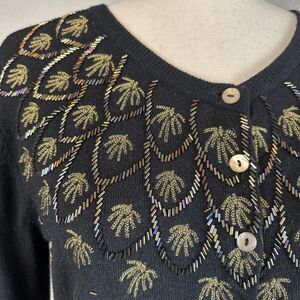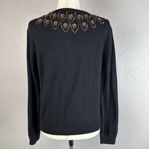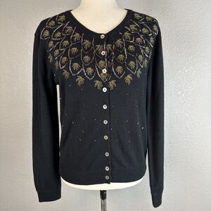 Sundance Womens Button Front Beaded Cardigan Size S Black Merino Wool Retro 50s