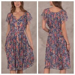 Sundance | Women's Clarisse Floral Dress Multicolor Tiered Boho Midi Flowy Buttons
