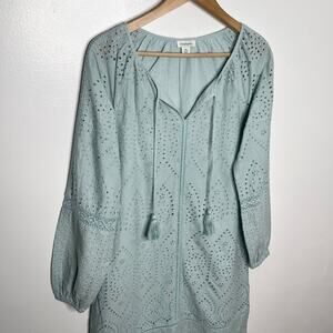 Sundance Womens Coastland Dress XS Aqua Eyelet Boho Cotton Peasant Tasseled