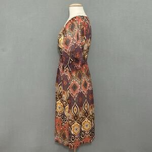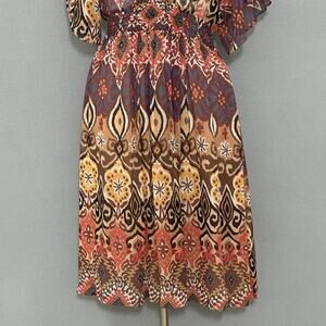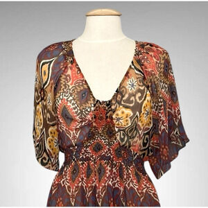 Sundance Womens Dress 8 Brown Colorful Silk Chiffon Flowy Boho Hippie Western
