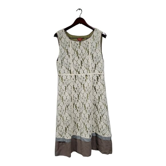 Sundance Women's Dress Mesh Lace Overlay Ivory Green Romantic Boho Sleeveless 14
