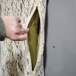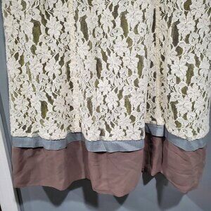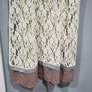 Sundance Women's Dress Mesh Lace Overlay Ivory Green Romantic Boho Sleeveless 14. There is a left side Zip. All measurements are approximate.