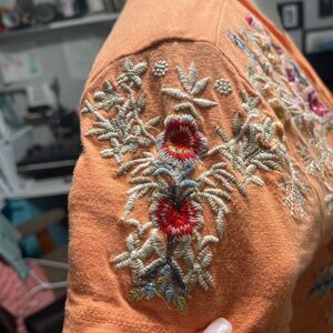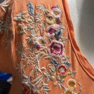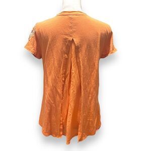 Sundance Women's Embroidered Floral Split Back Blouse Top Orange Small