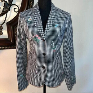 Sundance Women’s Embroidered Navy Gingham Tansy Blazer Size Small