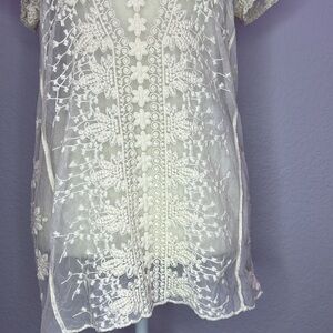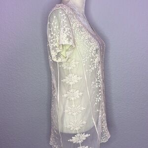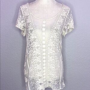 Sundance Women’s Embroidered Sheer Short Sleeve Top Off-White Small