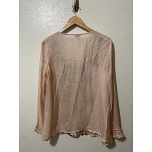 Sundance Women's Floral Embroidered Boho Pale Pink Long Sleeve Blouse Medium