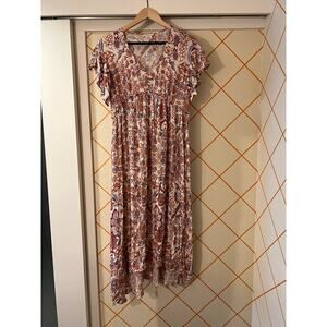 Sundance Women's Floral Print Vneck Midi Dress Short Sleeve Pink/Cream Size 4