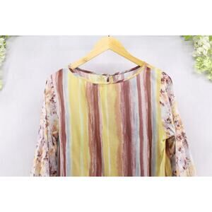 Sundance Women's Floral Striped Keyhole Pullover Blouse Multi Sz M Cotton Blend