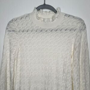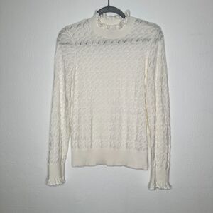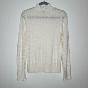Sundance Womens Frances Ruffle Sweater Scallop Stitch Pointelle Size M