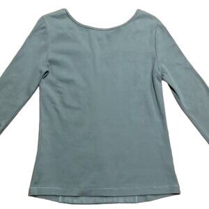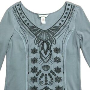 Sundance Womens Gray Long Sleeve V-Neck Top with Floral Embroidered Net Overlay