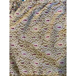 Beautiful Sundance cotton shorts in a tan/cream/pink ikat pattern. Pull-on elastic waist, lightweight, and breezy for summer, beach, or lounging.