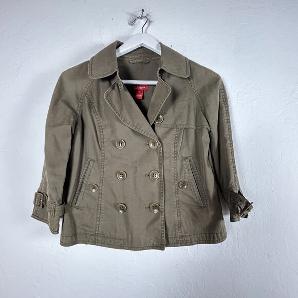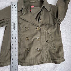 Sundance Womens Olive Green Double-Breasted Pea Coat Small Cotton Cropped Pocket