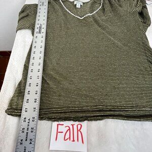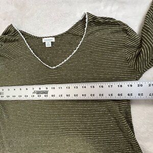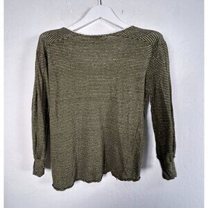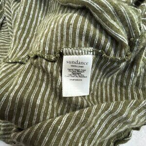 Sundance Womens Olive Green Striped Linen V-Neck Long Sleeve Top Medium Casual