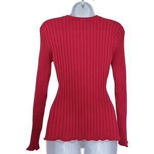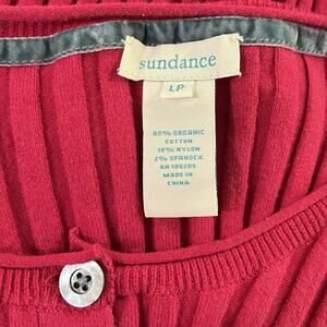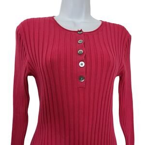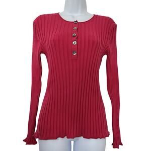 Sundance Womens Organic Cotton Ribbed Henley Sweater Size LP Magenta Pink Layers