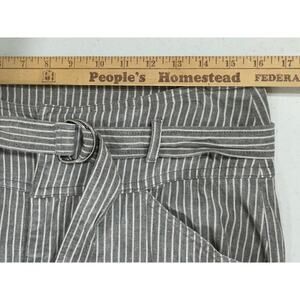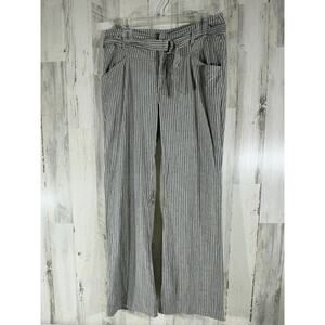 Sundance Womens Pants Size 8 (32x31.5) Linen Blend Gray Striped Belted Wide Leg