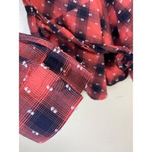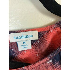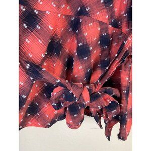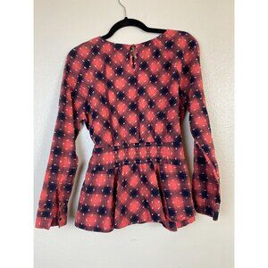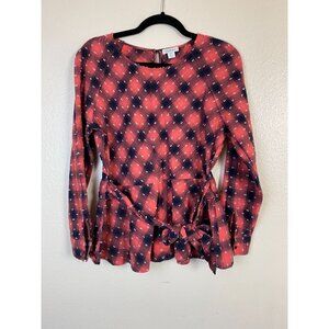 Sundance Red Navy Plaid Long Sleeve Peplum Top Size Medium Womens Cotton Blend Belted