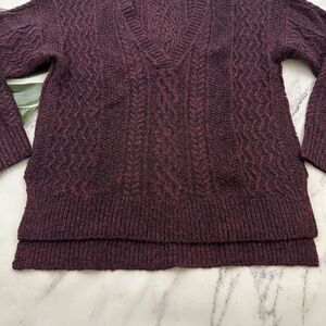 Sundance women's dark purple cable knit v-neck pullover sweater, size S. It is free from any rips or stains. It measures about 44 inches around the bust and is about 26 inches long.