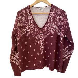 Sundance Womens Red Floral V-Neck Sweater Size Small Petite
