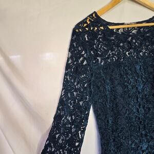 Sundance, women's blouse, lace blouse, long sleeve, floral lace, dark teal, round neck, elegant top, polyester blouse, hand wash blouse, medium size